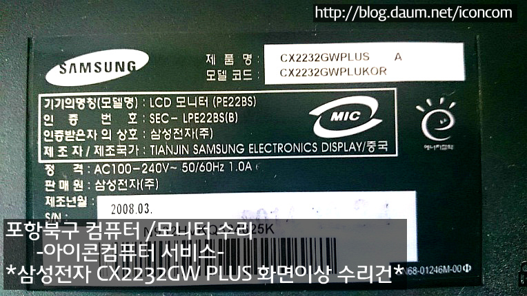 | 싱크마스터 매직CX203BW(삼성 - 전원무(포항북구 모니터수리) (0) | 2015.02.03 |