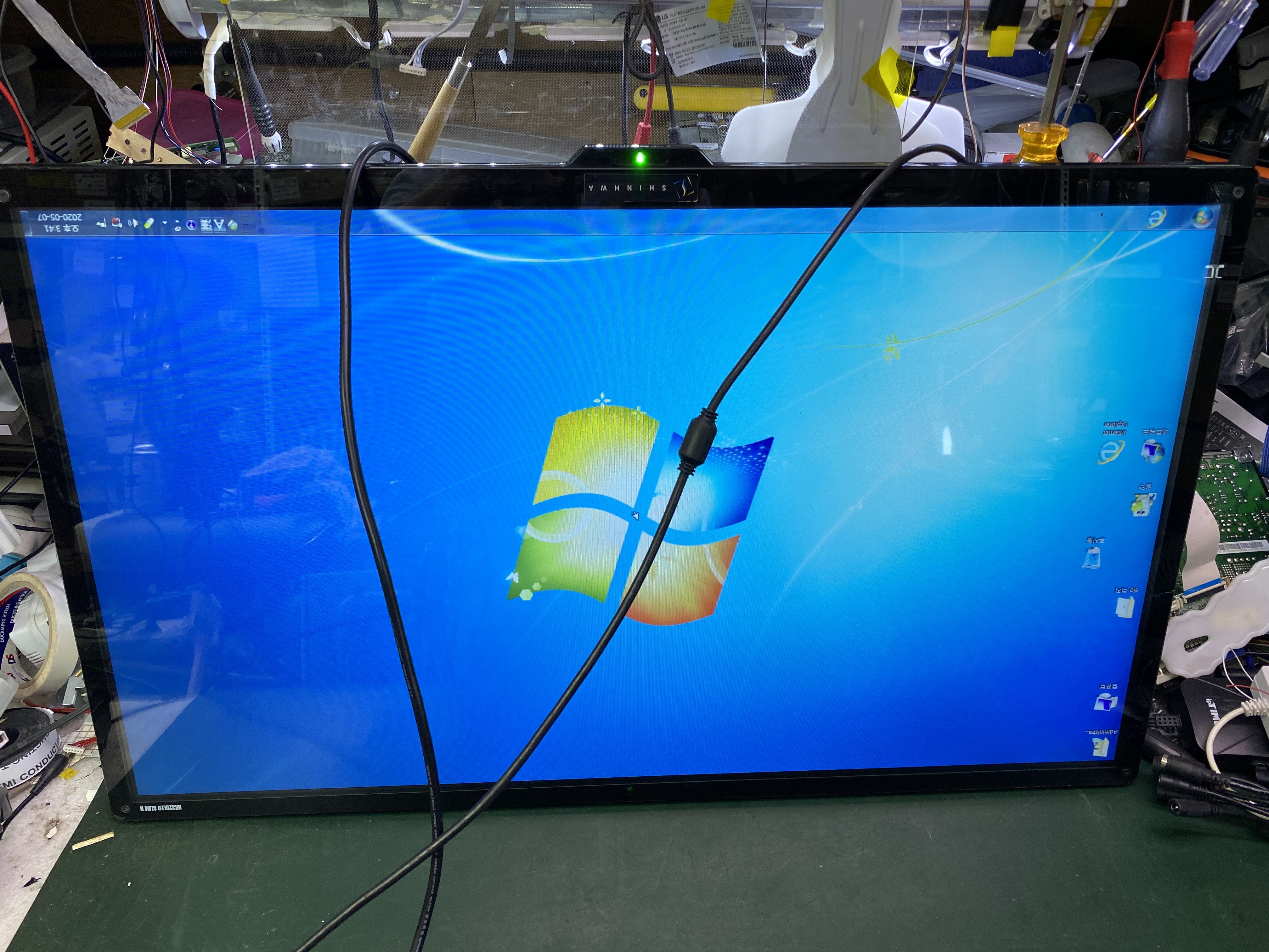 이제 가조립 상태에서 전원을 켜 화면이 잘 나오는지