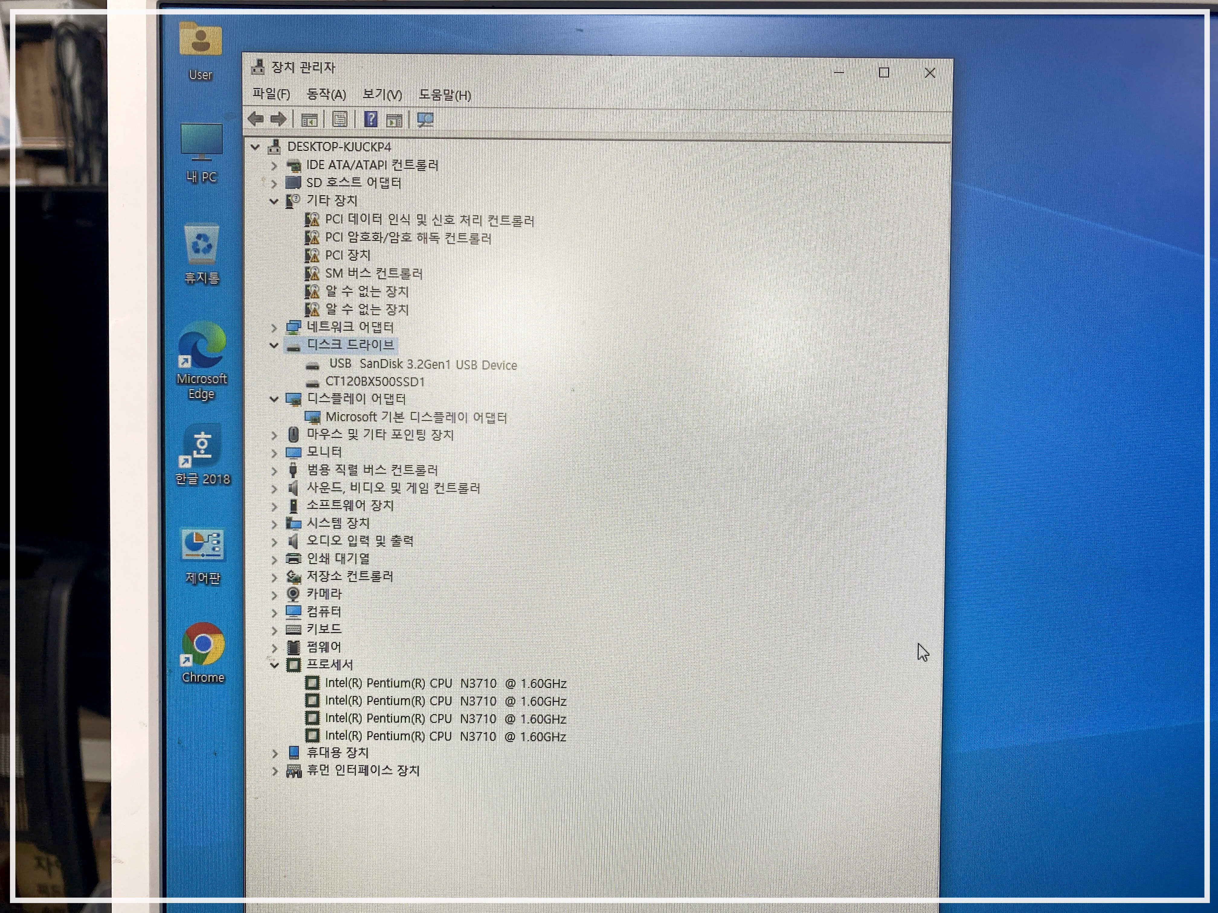 이제 부팅 후 장치 관리자에서