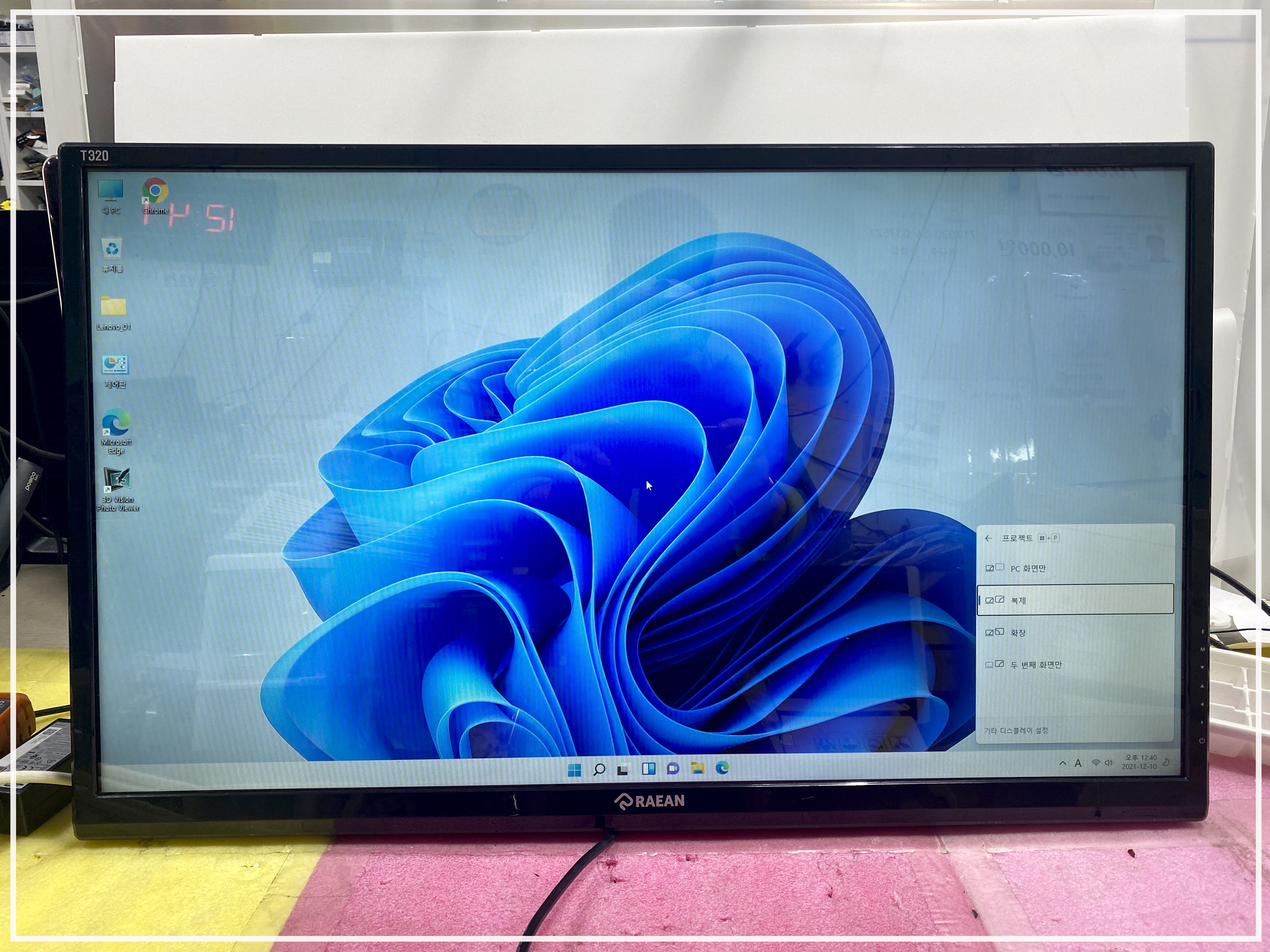 벽에 거치를 해서 사용한 모니터