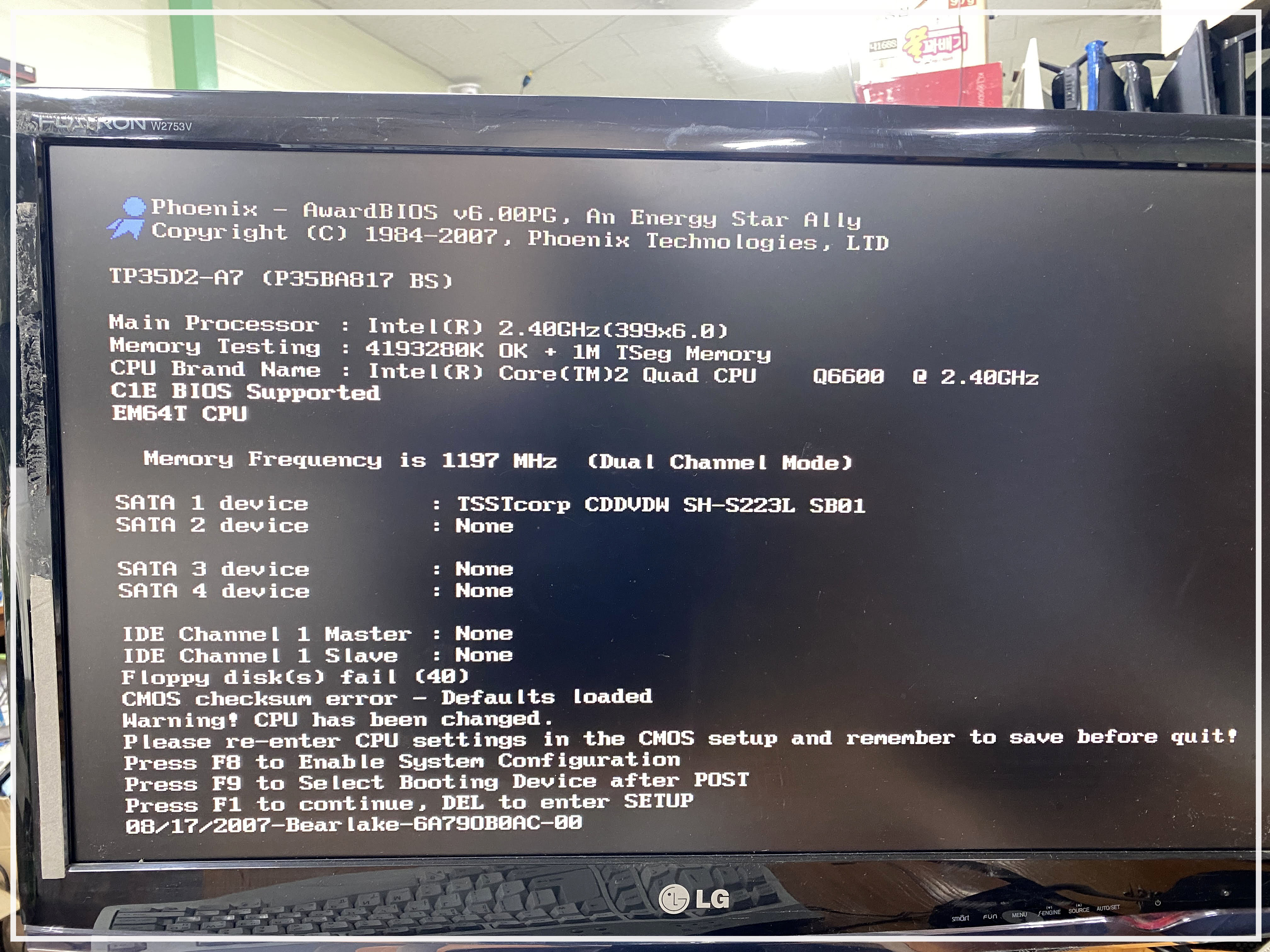 코어 2 쿼드 켄츠필드 Q6600 CPU 가