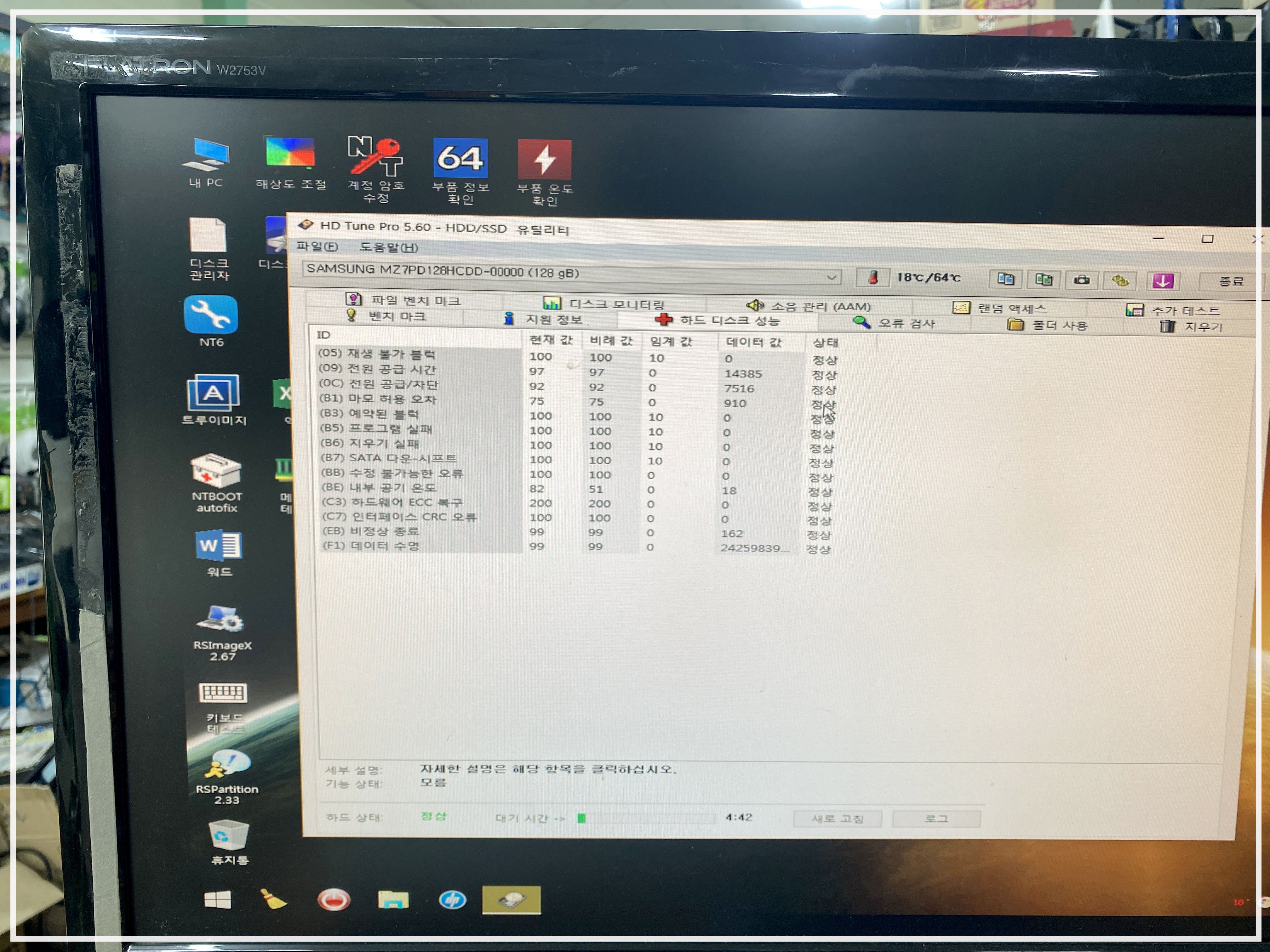 그리고 HDD도 테스트 프로그램