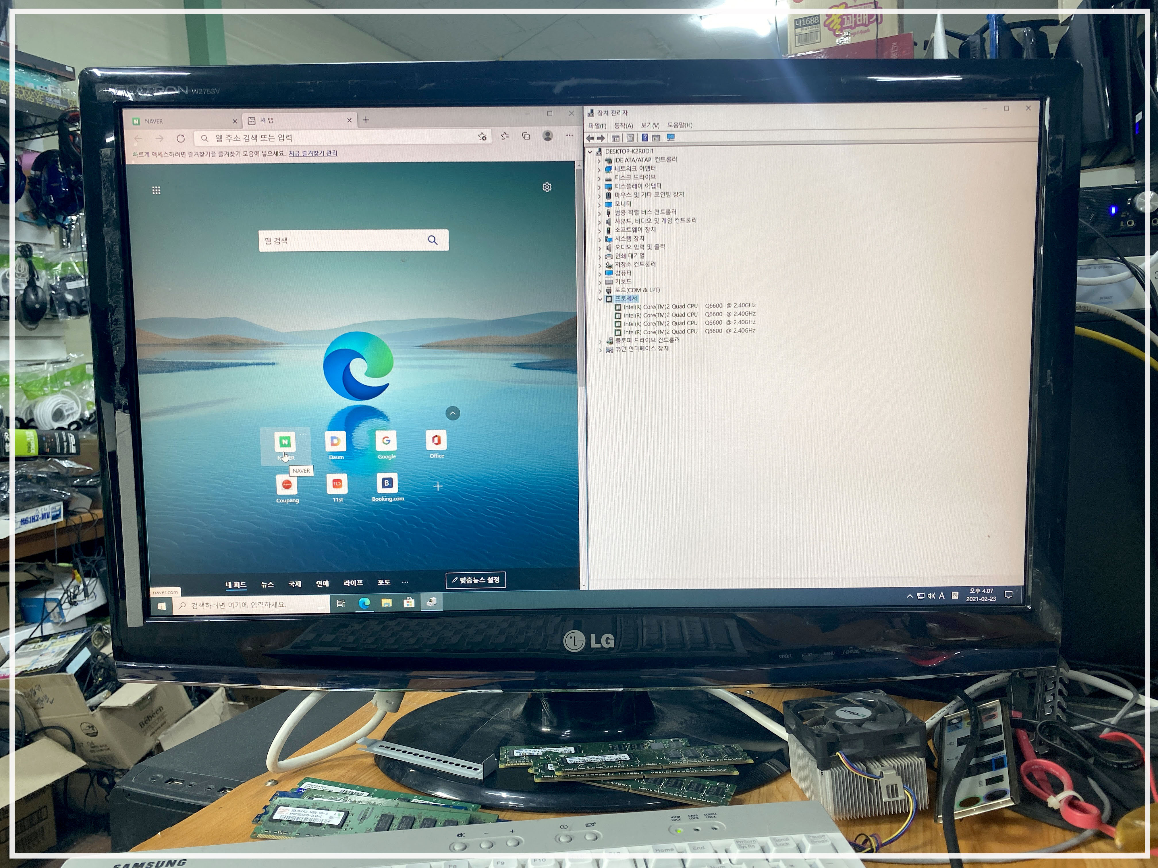 가지고 오신 조립컴퓨터 2대를 점검