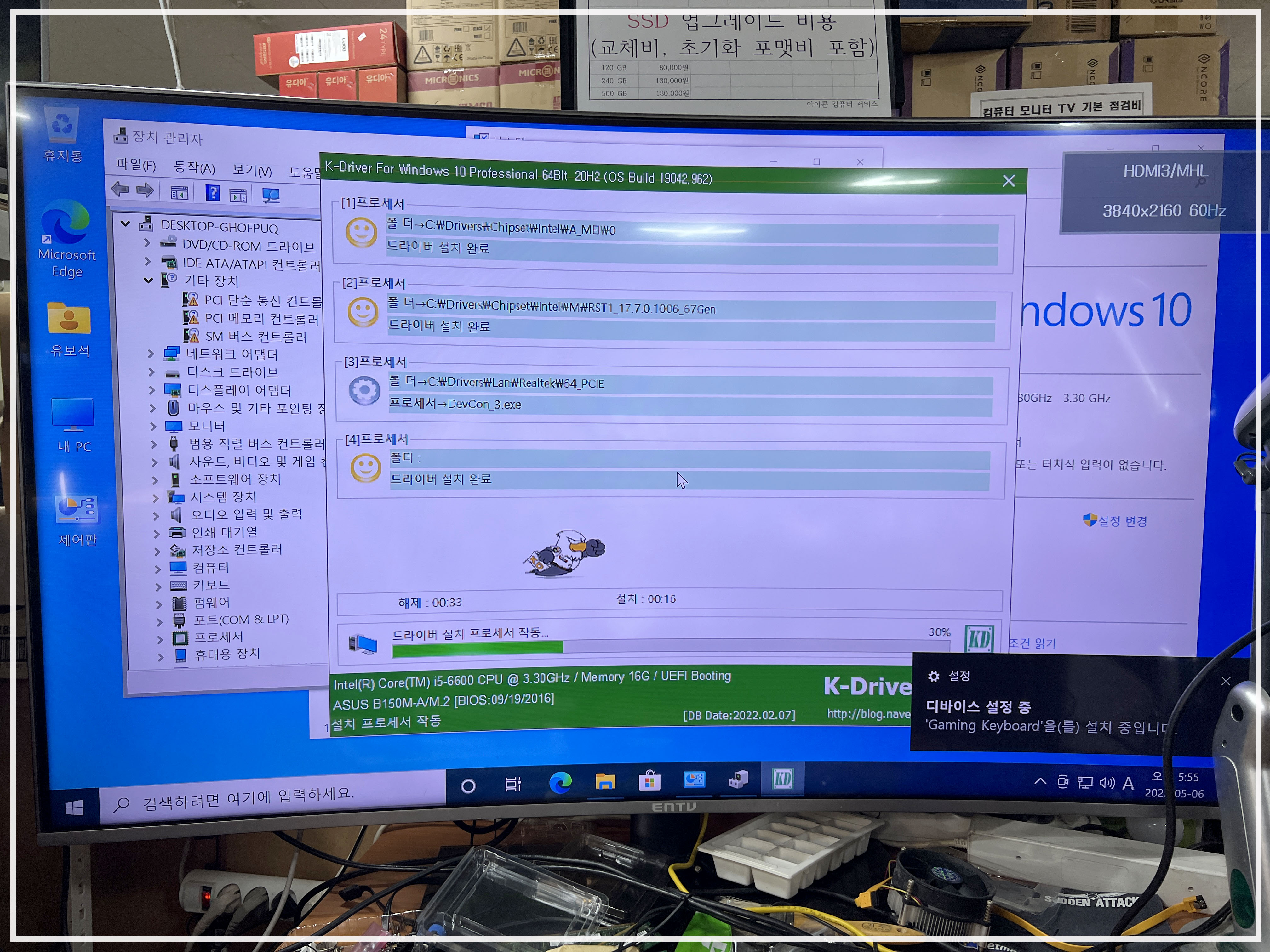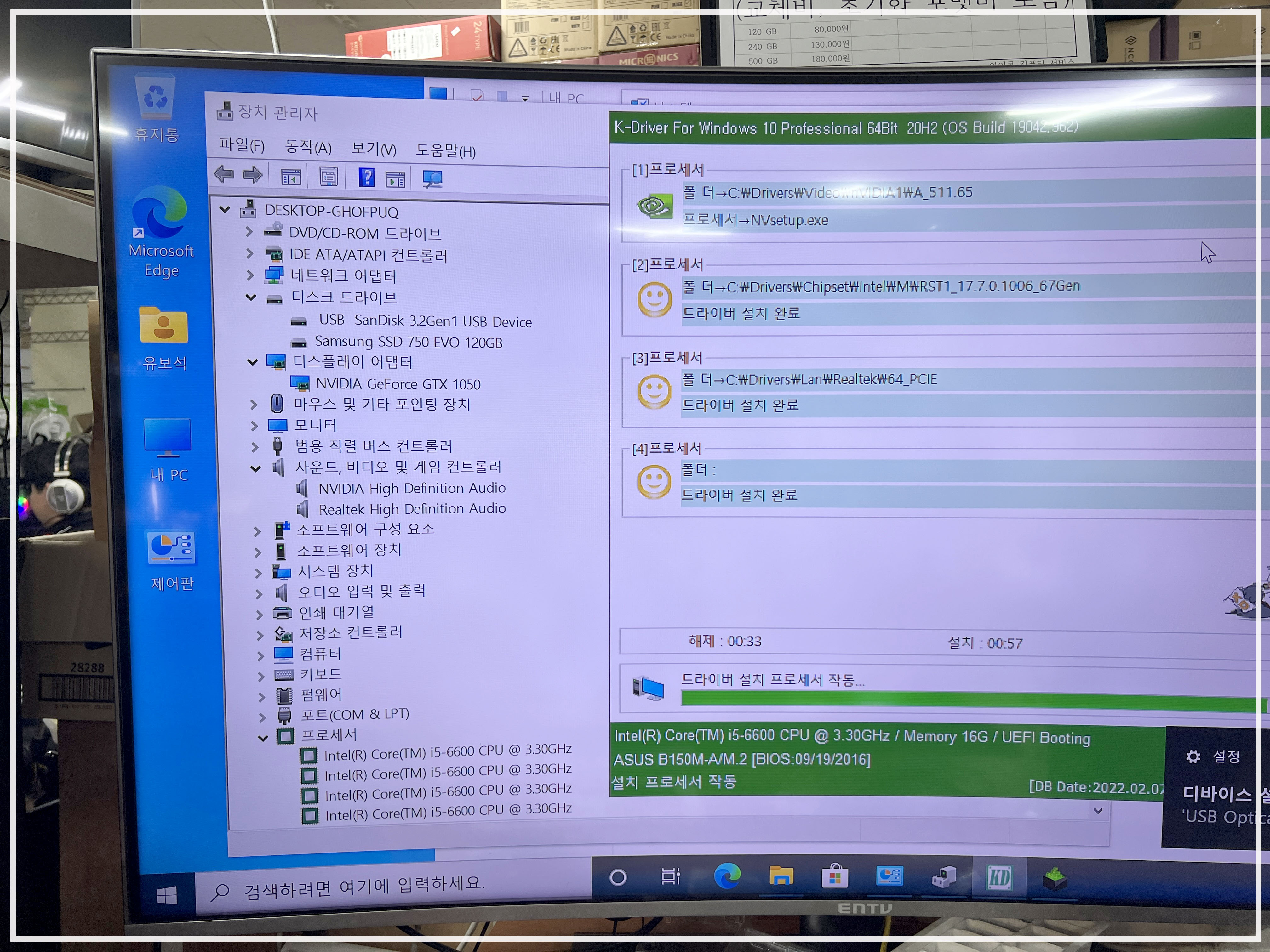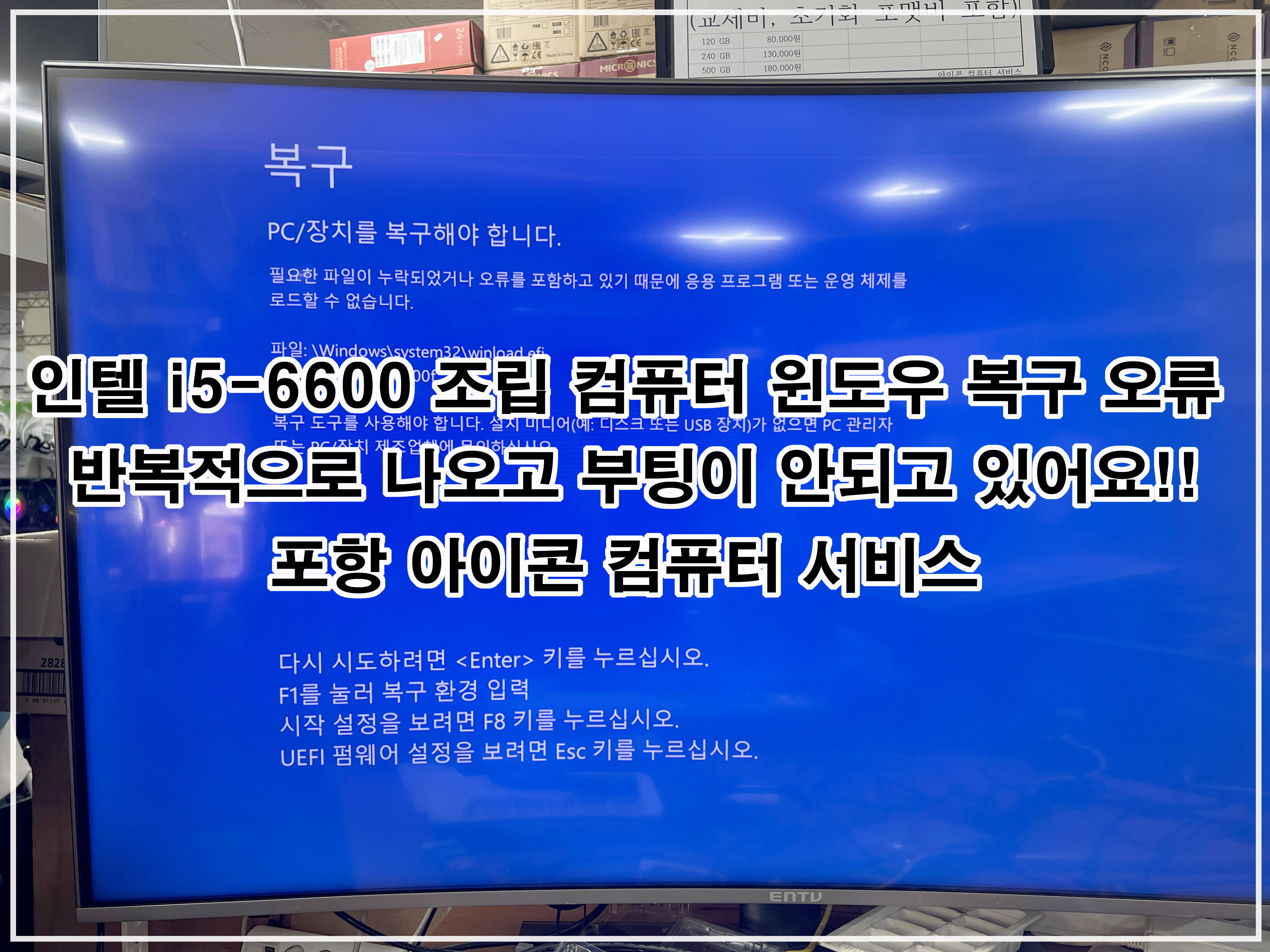 인텔 6세대 조립 컴퓨터 윈도 복구