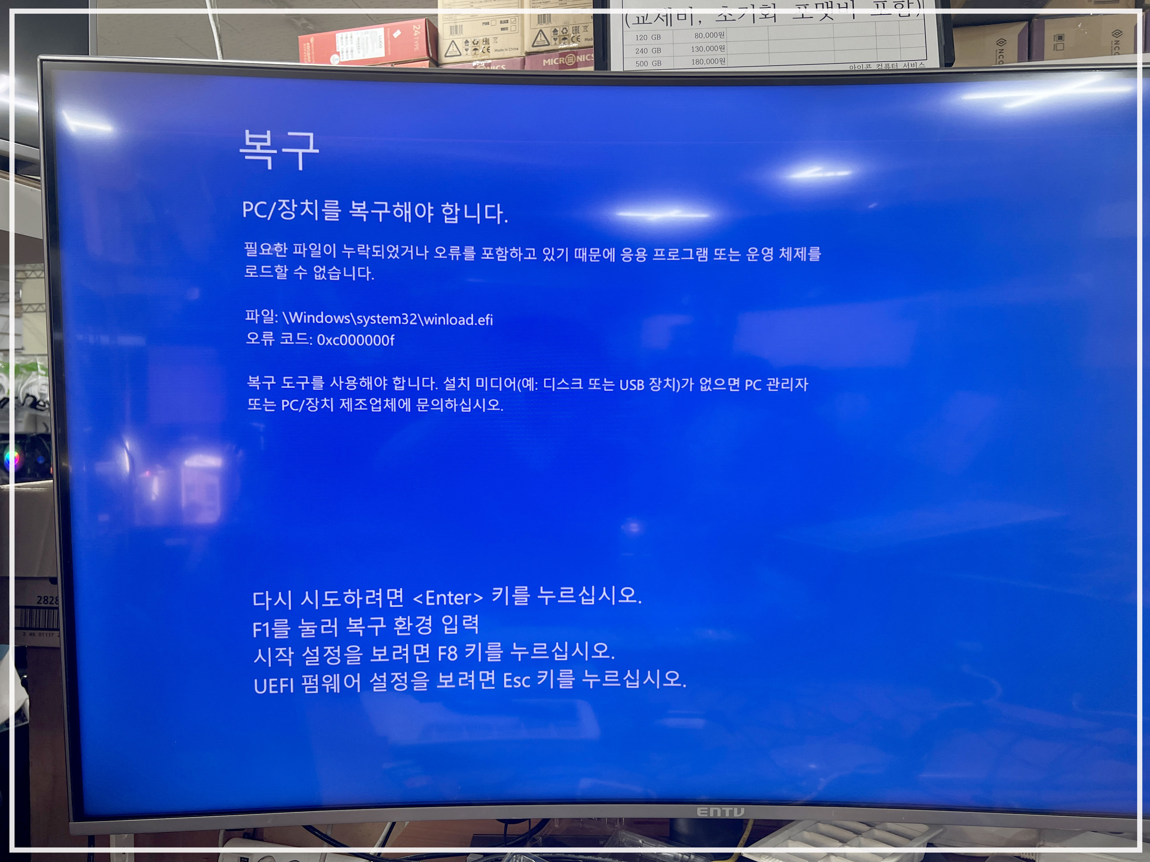 오류가 반복적으로 나오면서 부팅이