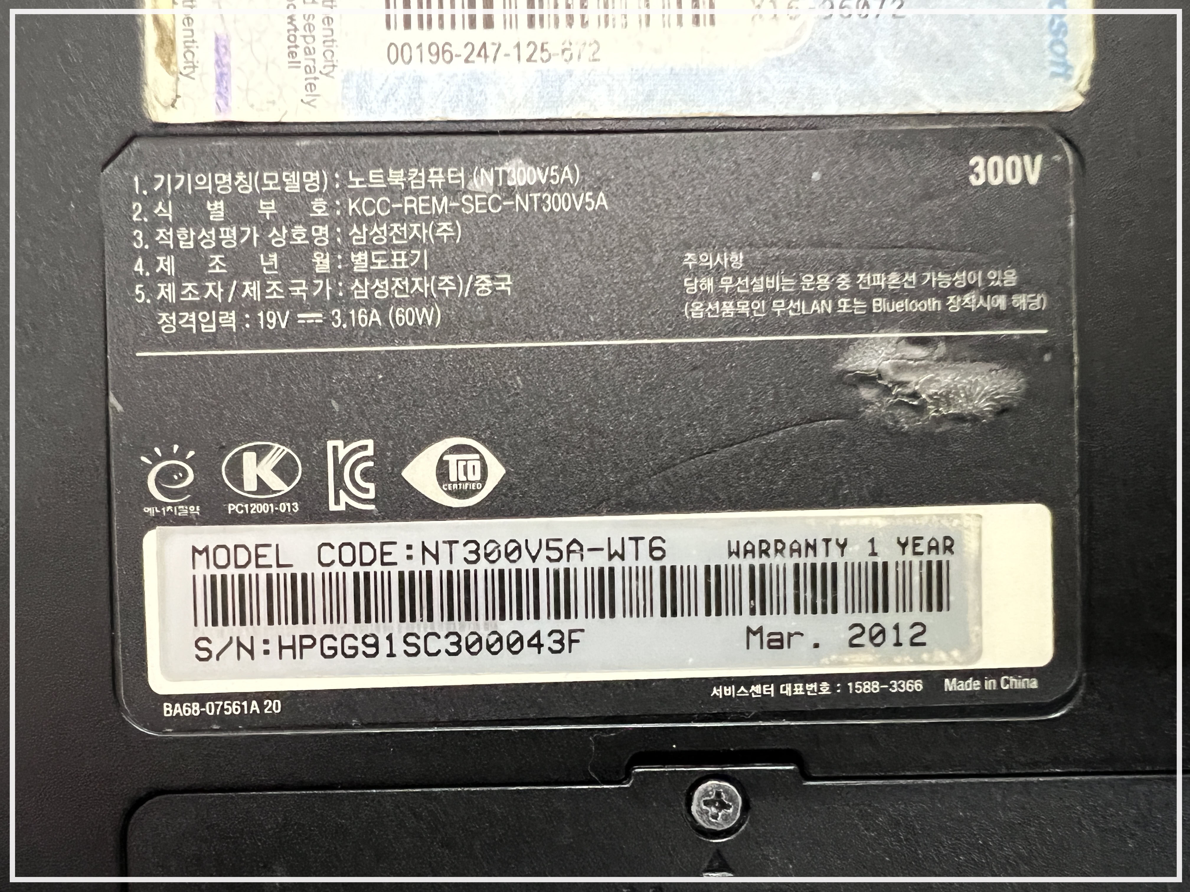 삼성전자(주)노트북 컴퓨터(NT300 V5 A) 300V