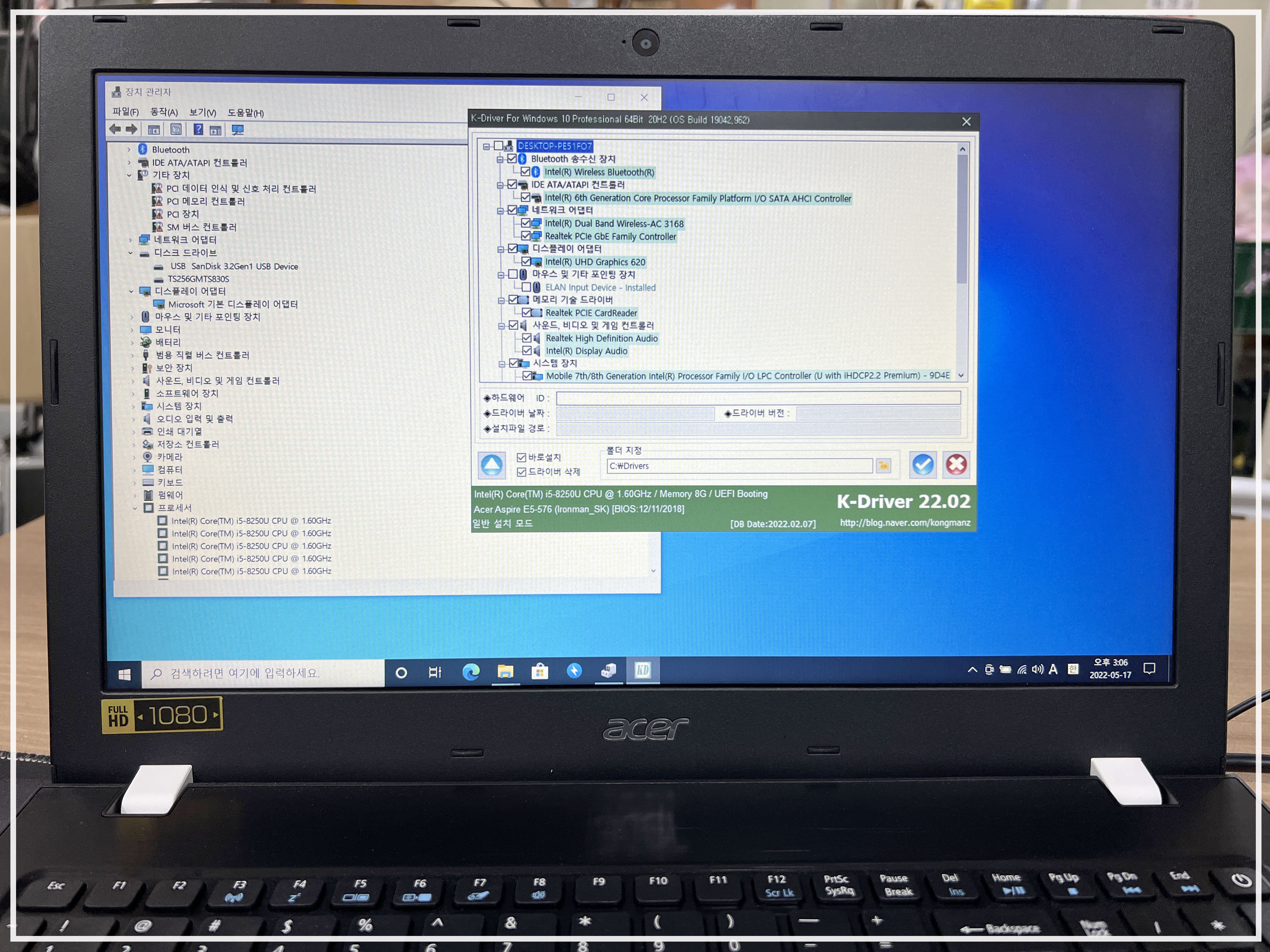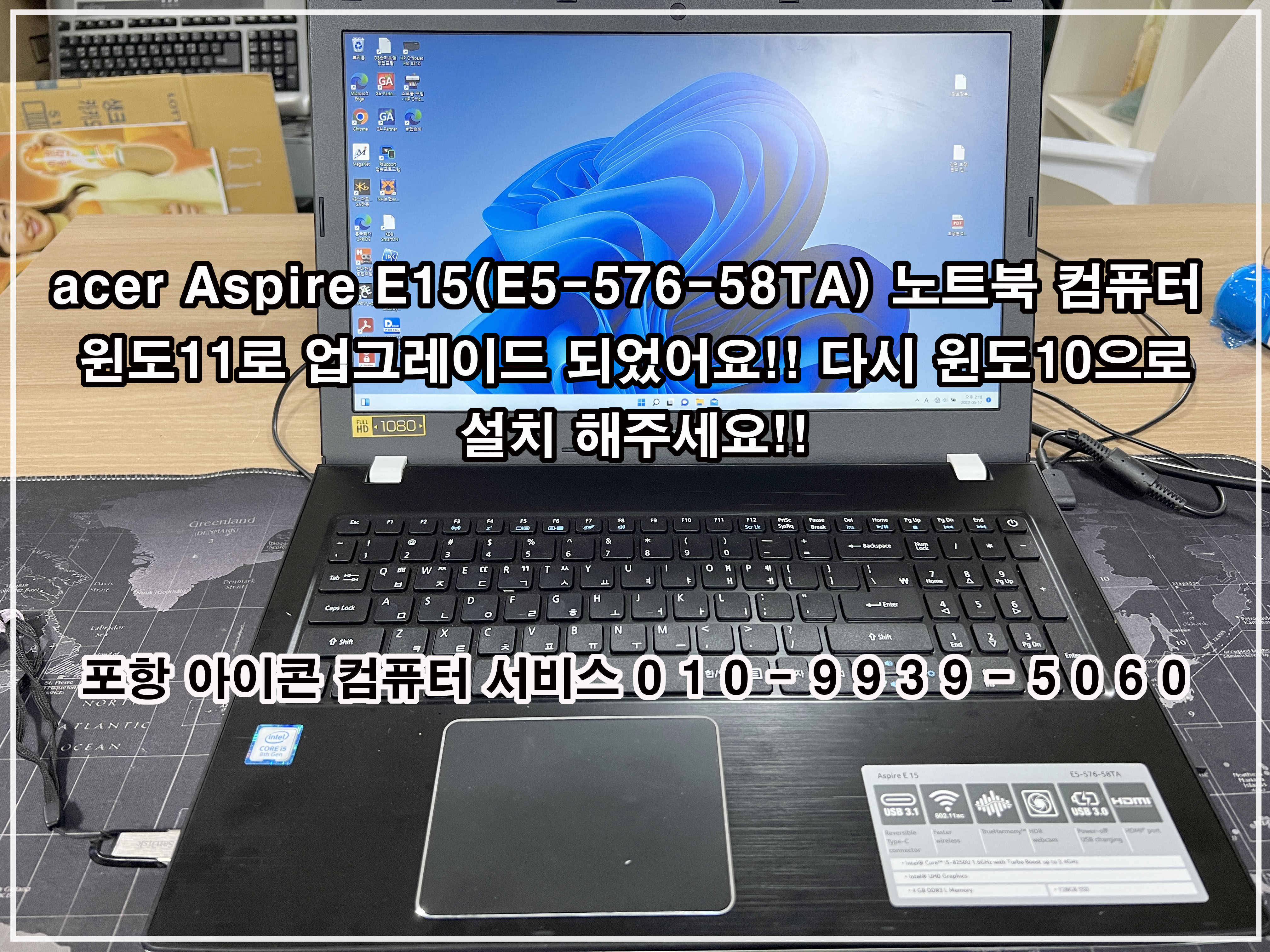 에이스 노트북 컴퓨터에 윈도 10을