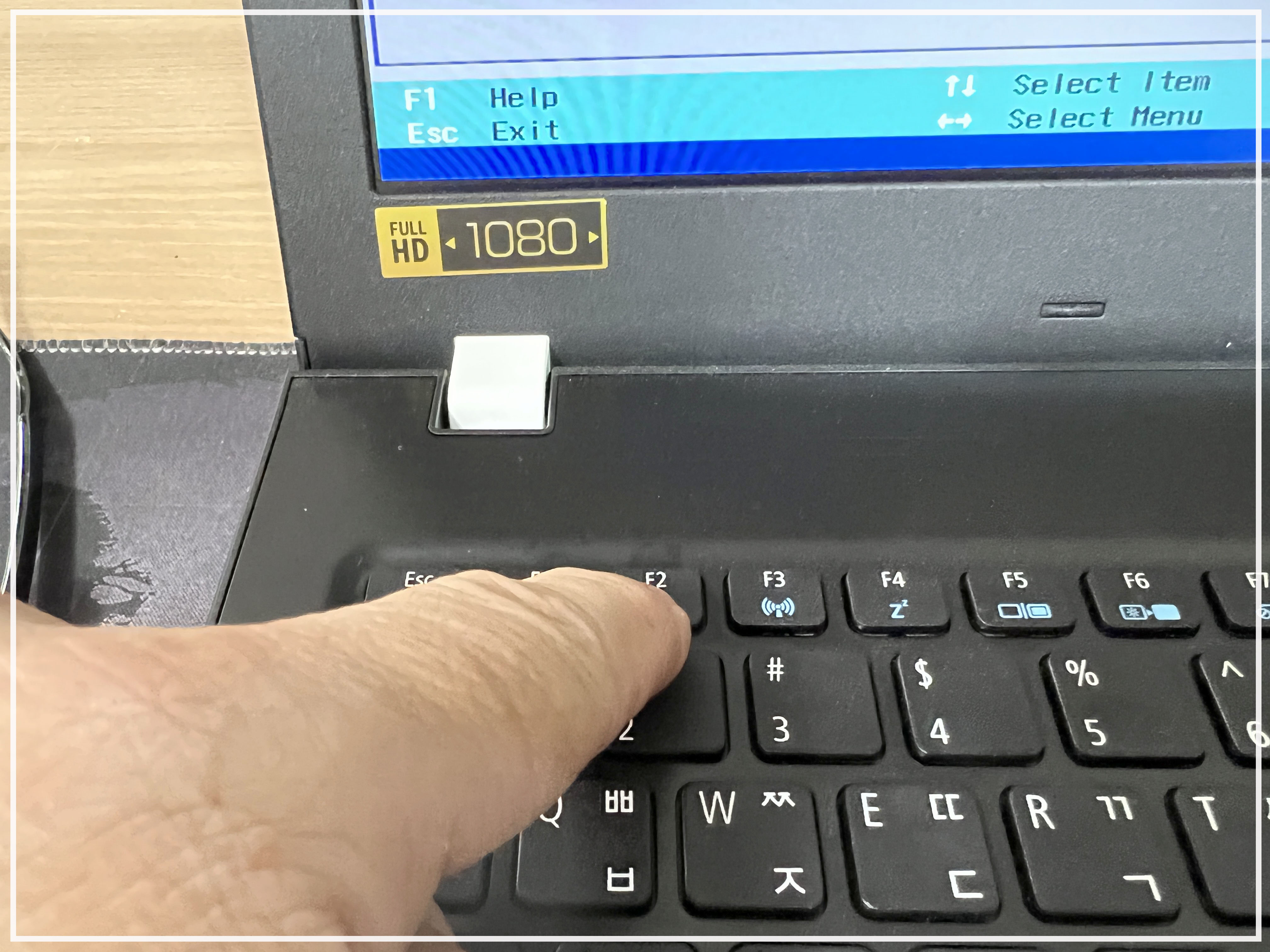 다시 재부팅(강제 종료) 후 F2를 눌러서