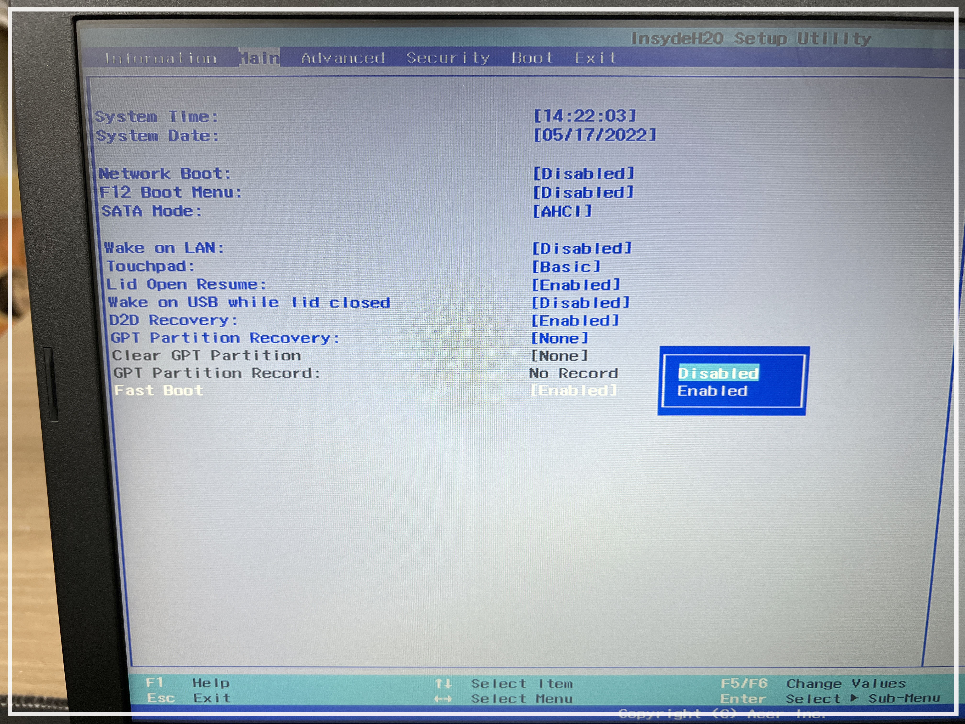 Fast Boot를 disabled를 해줍니다.