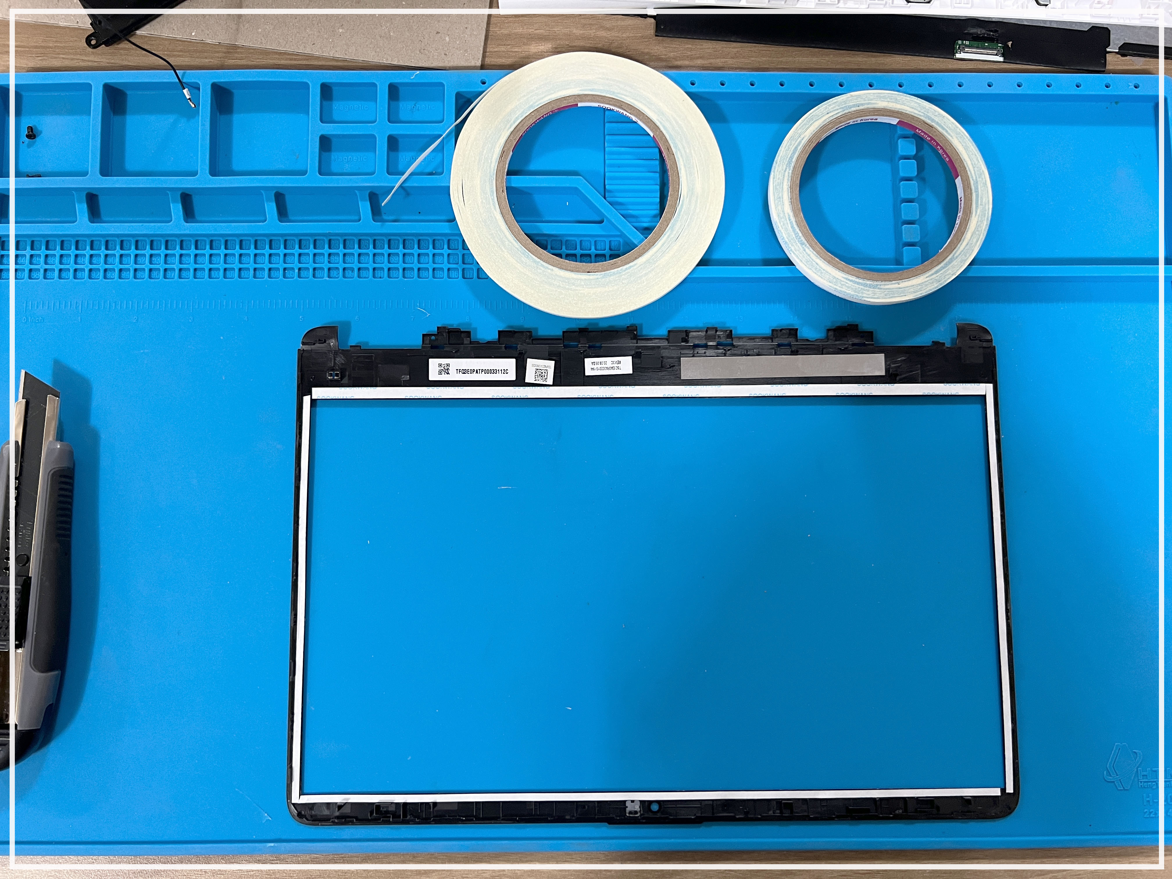 전면 베젤에 양면테입 작업을 다시