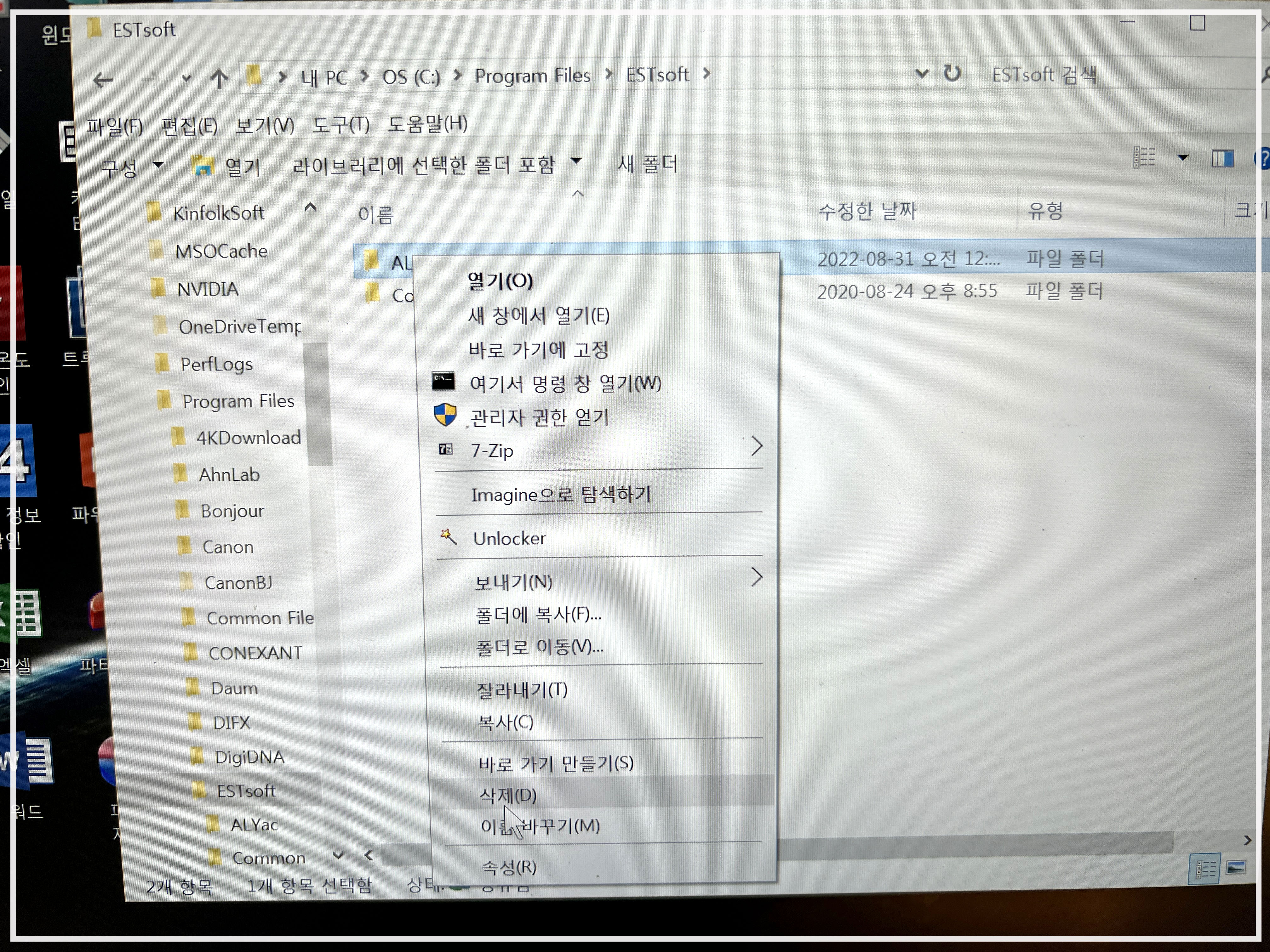 삭제하고 재부팅해보았지만