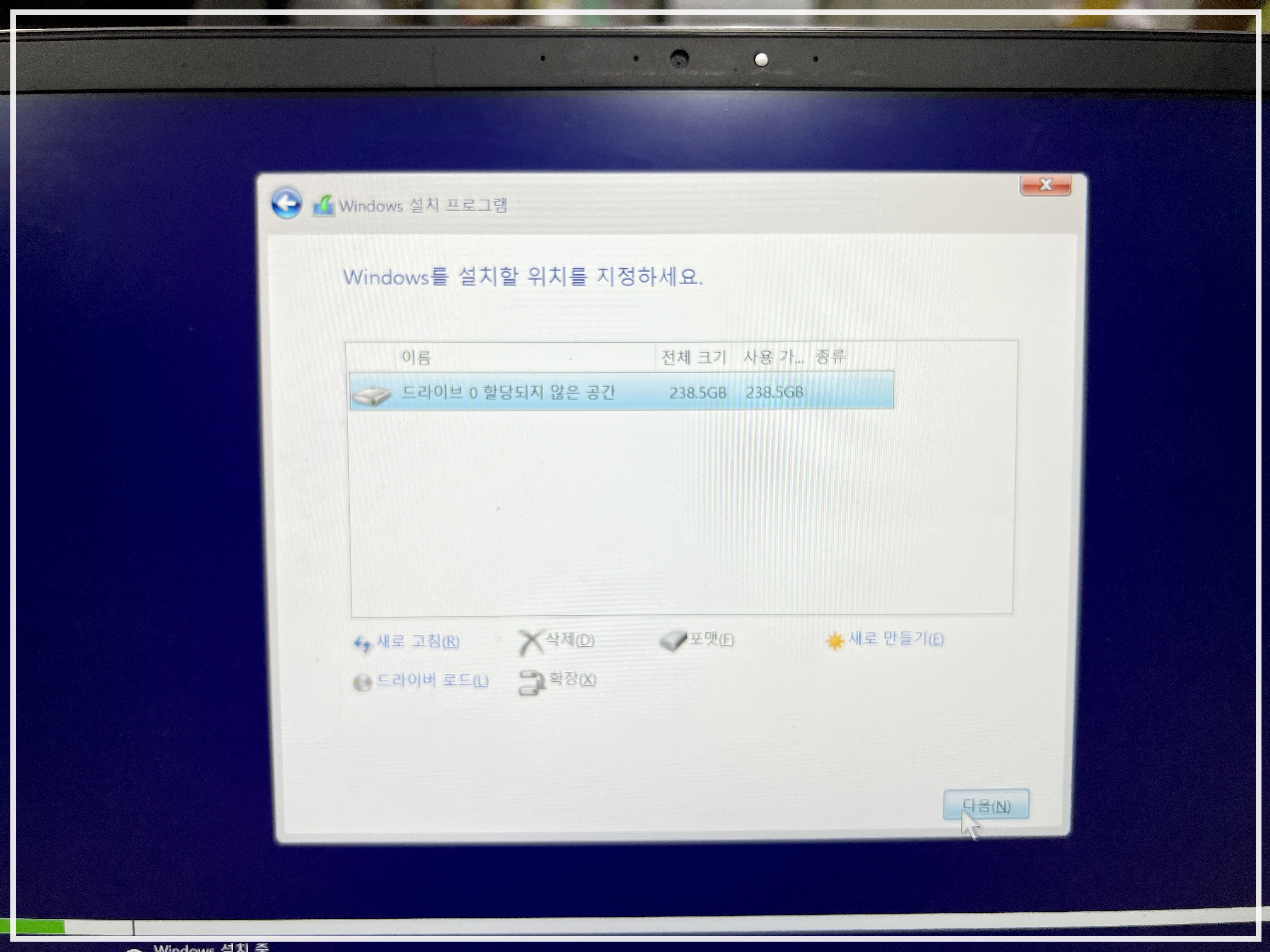 알약 오류로 포맷 후 윈도를 재설치