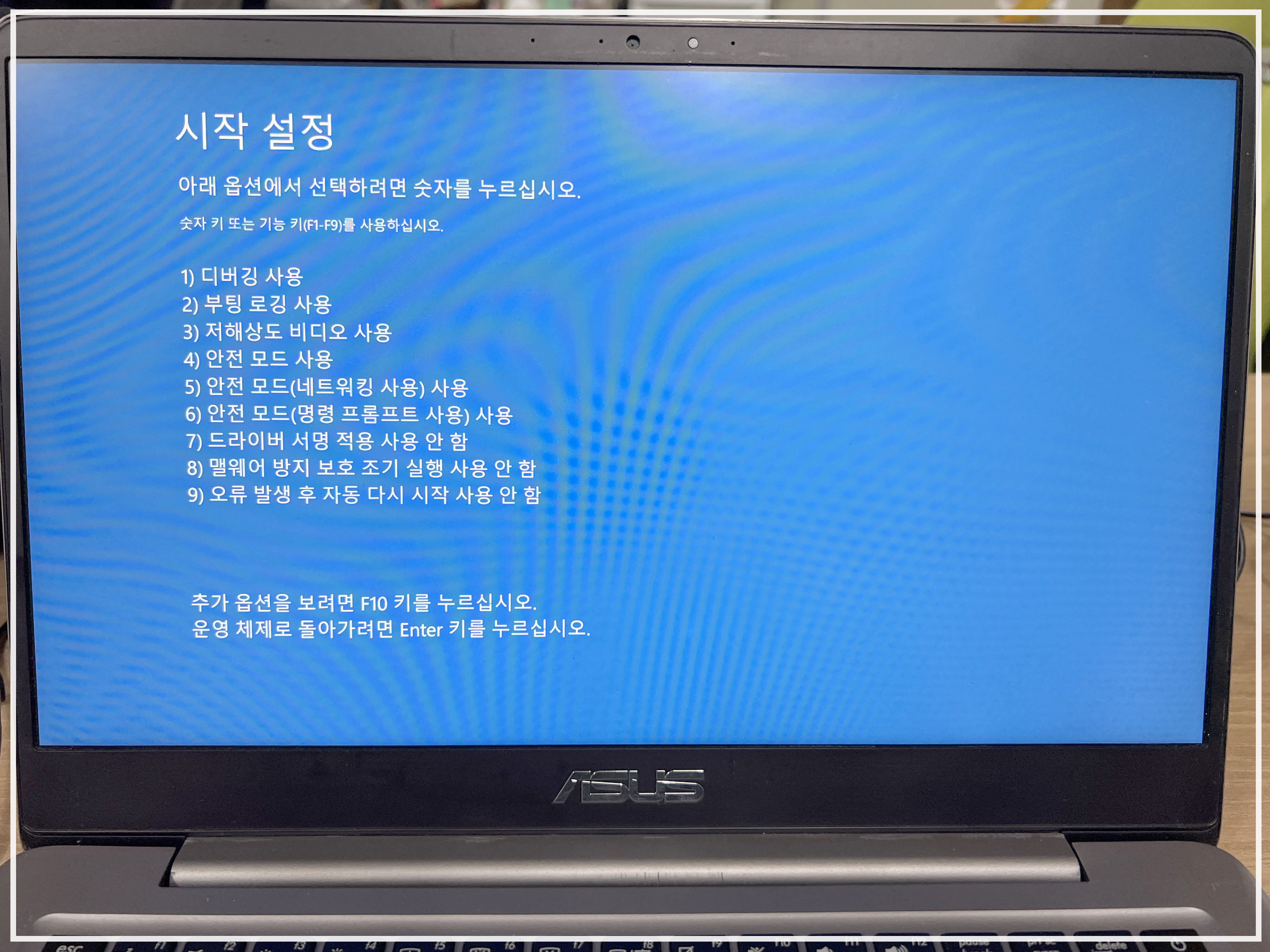 시작 설정 메뉴에서 안전모드를