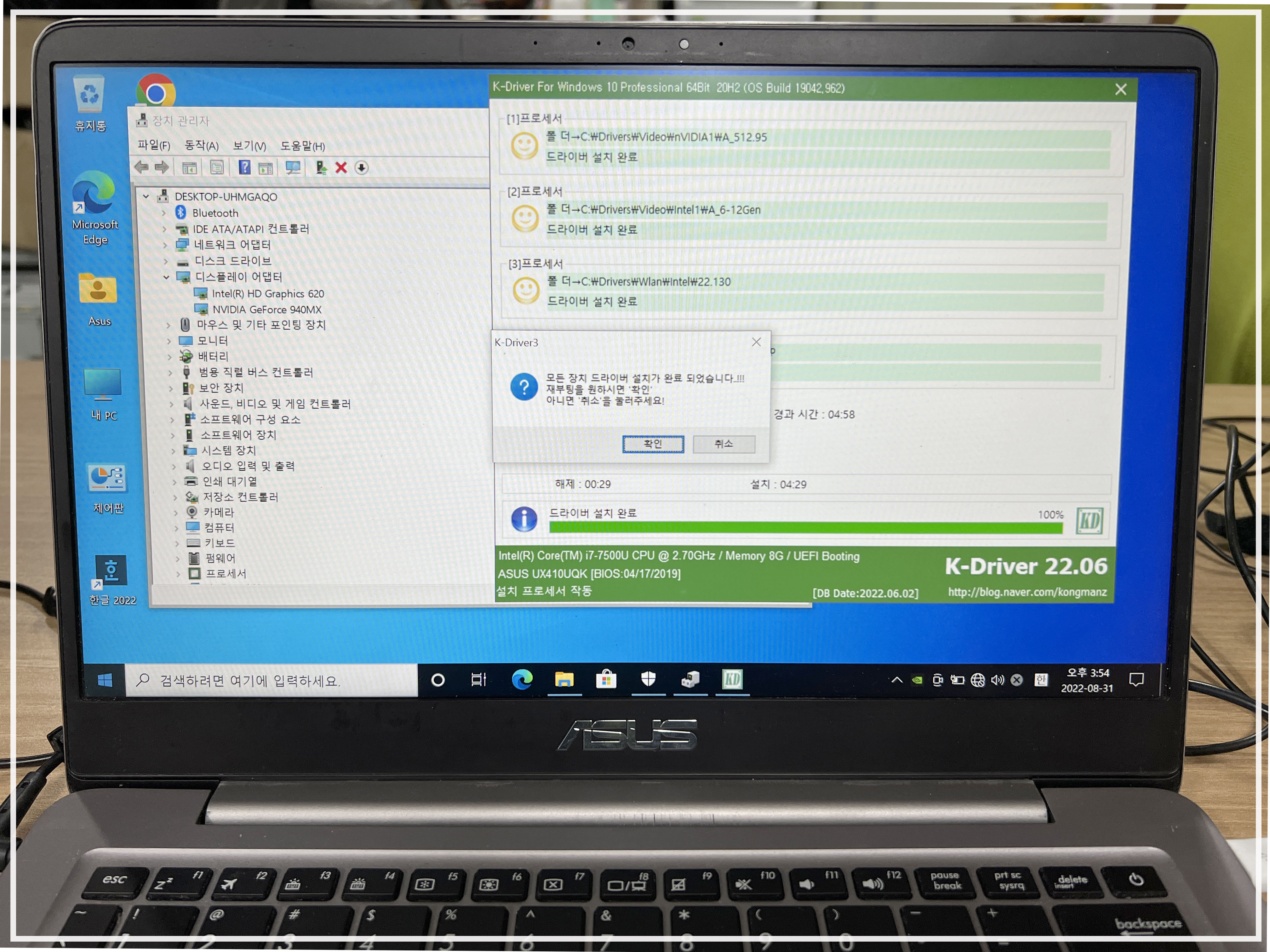 윈도 설치 복원을 한 후 장치 관리자