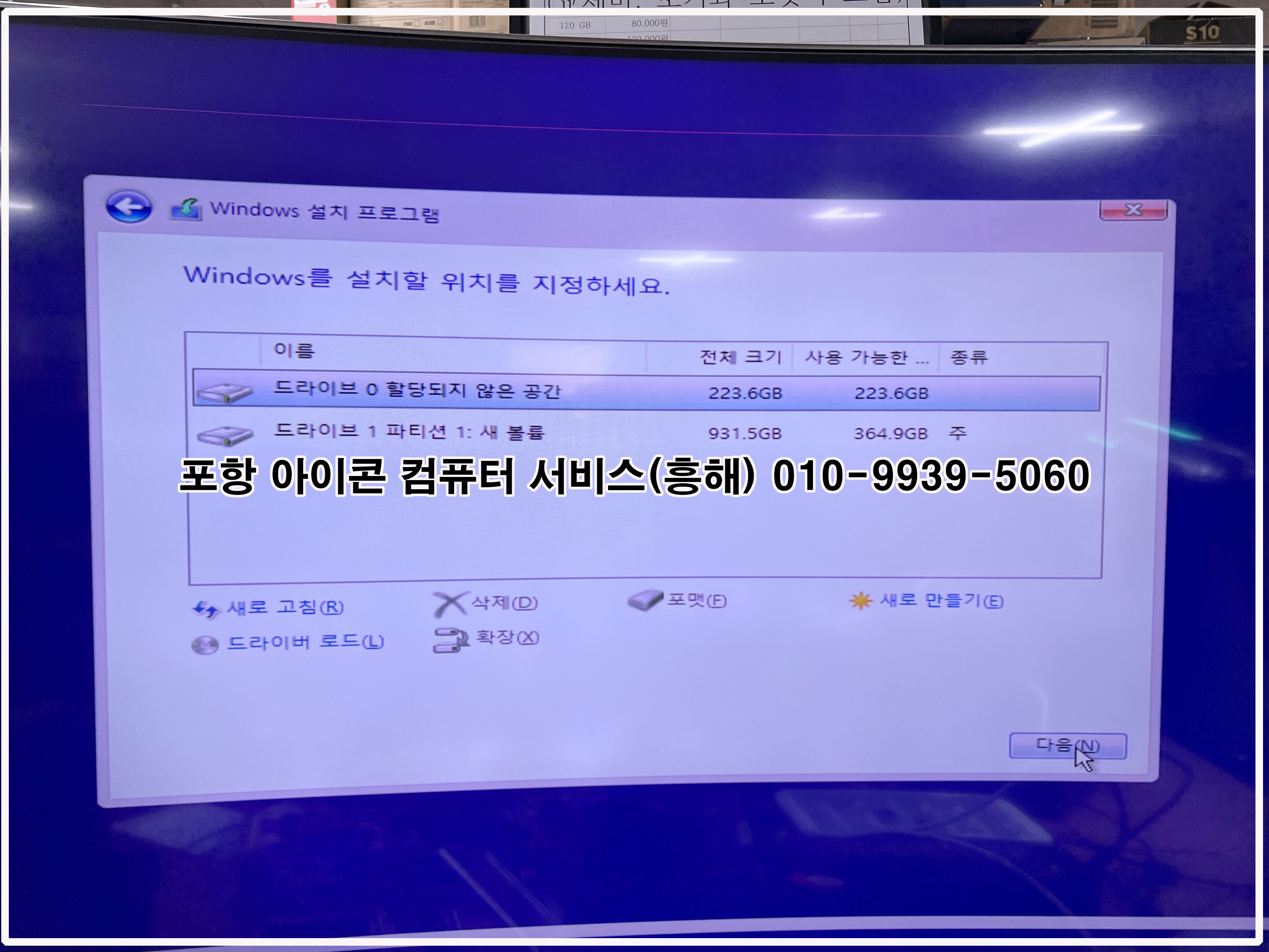 컴퓨터 포맷 작업을 합니다.