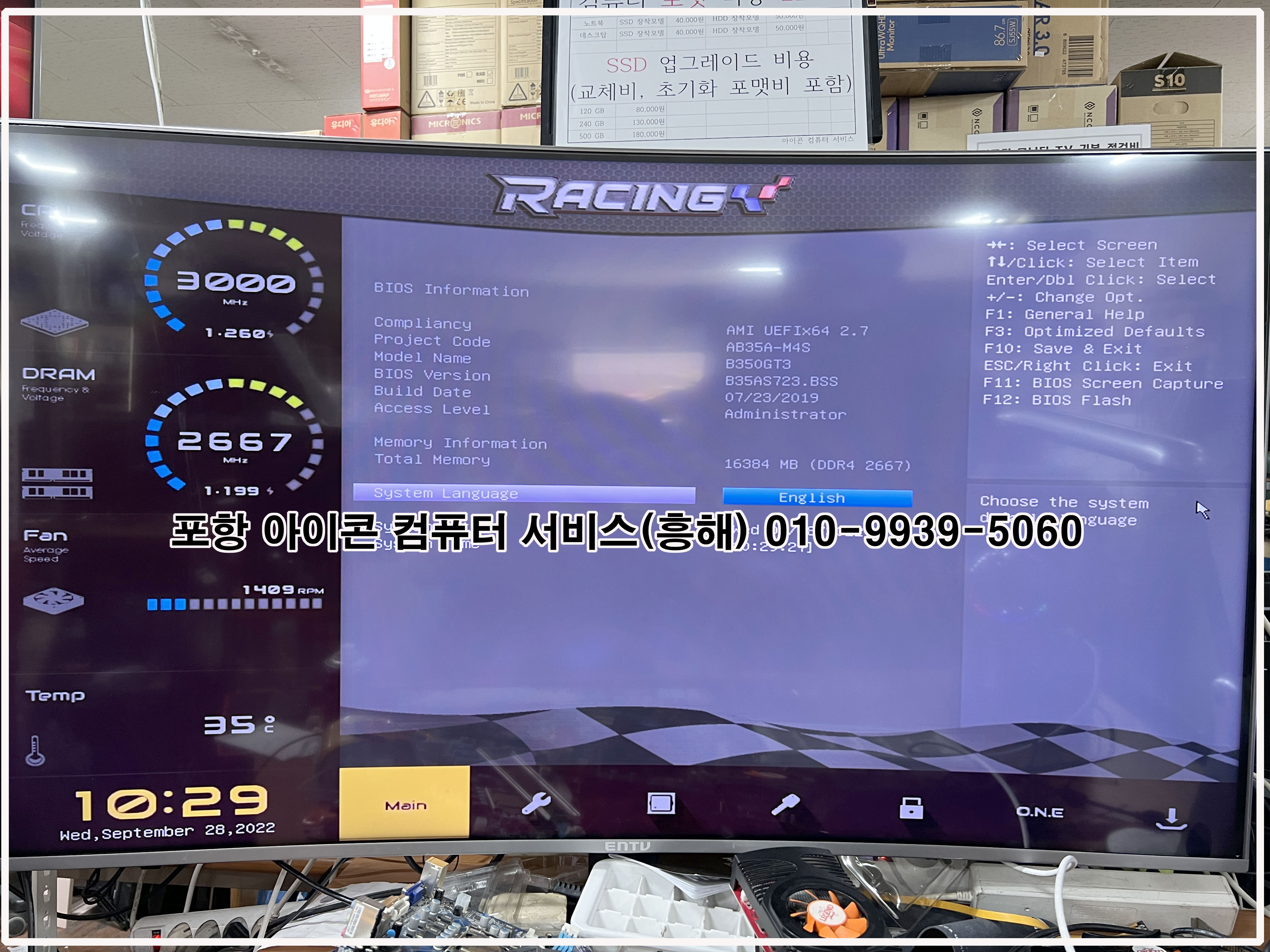 셋업유틸에 들어가 메인보드