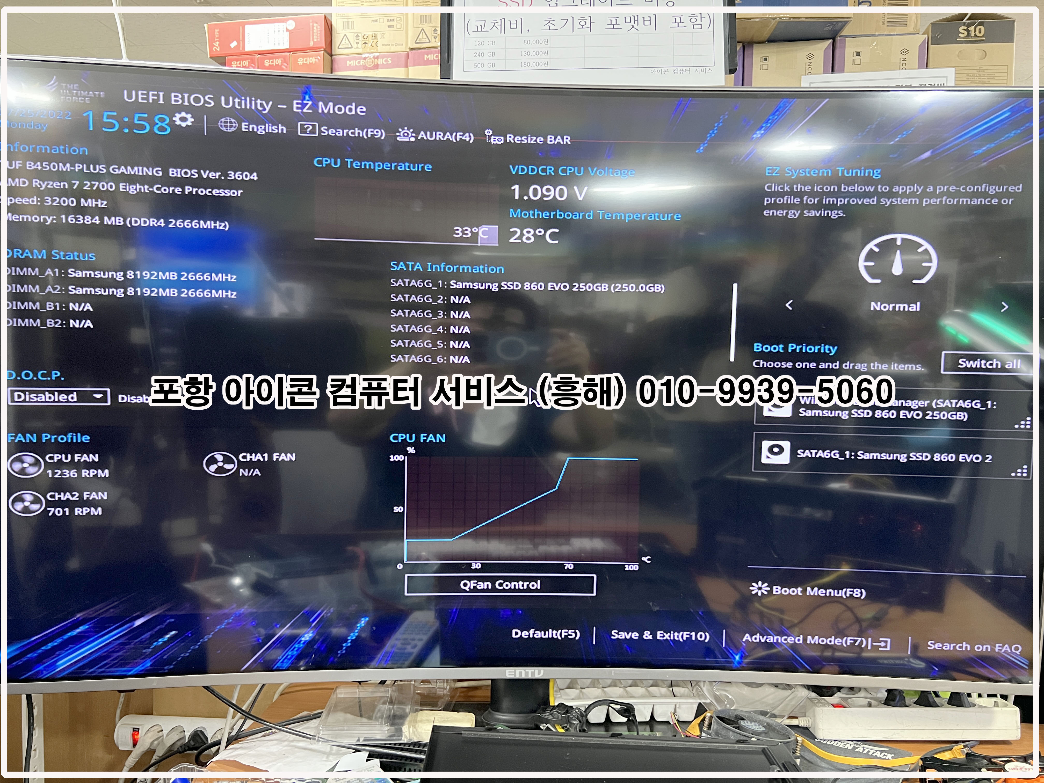 AMD 라이젠 7 조립 컴퓨터 부팅 오류로