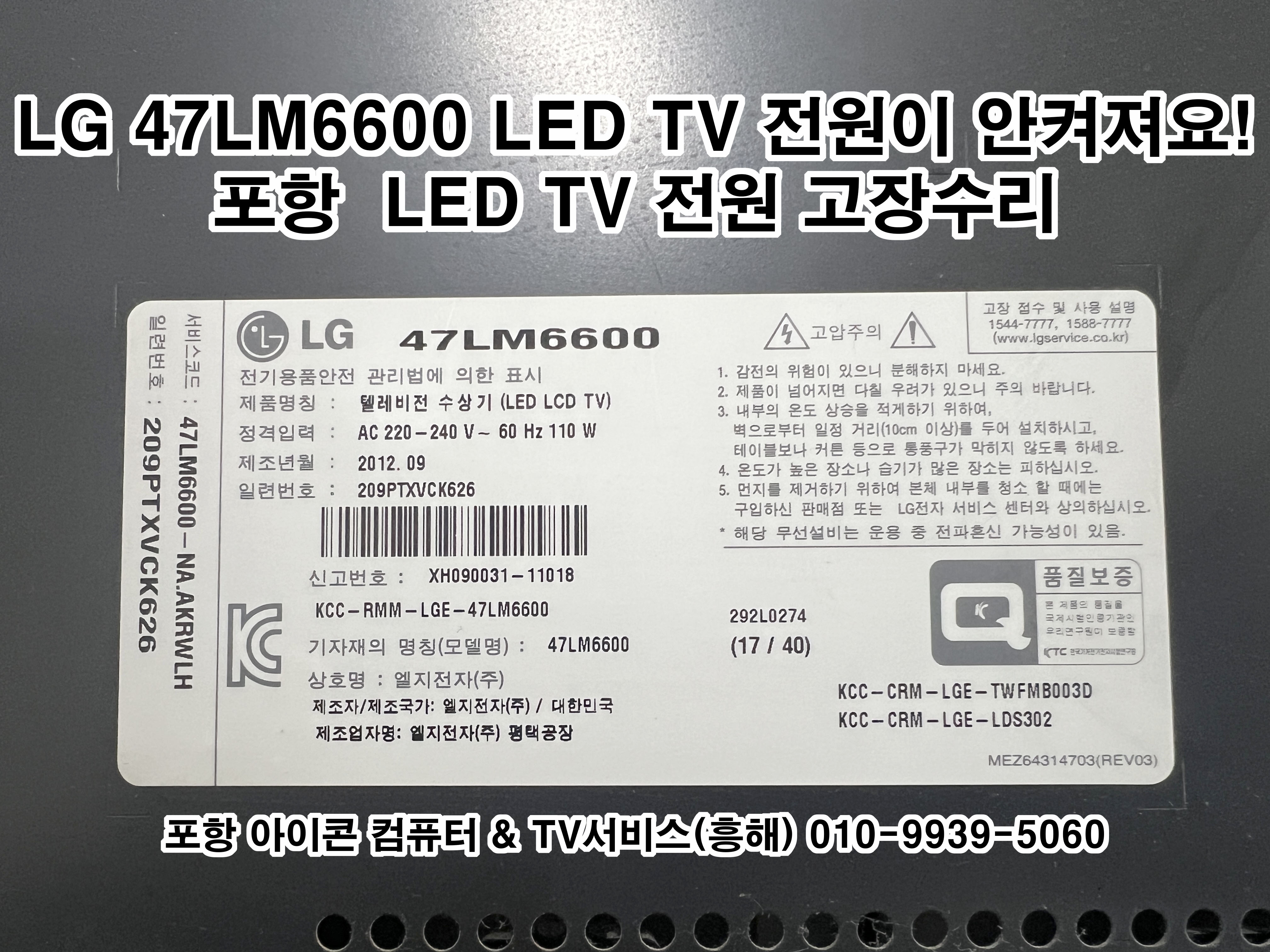 전원 안 켜지는 47LM6600 TV 메인보드