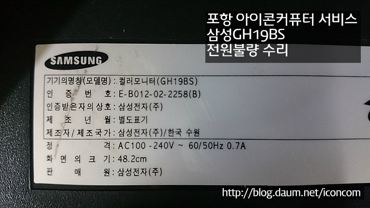 모델며은 GH19BS 이며 삼성전자 수원공장에 만들었네요!!