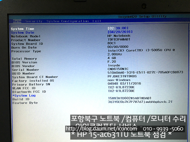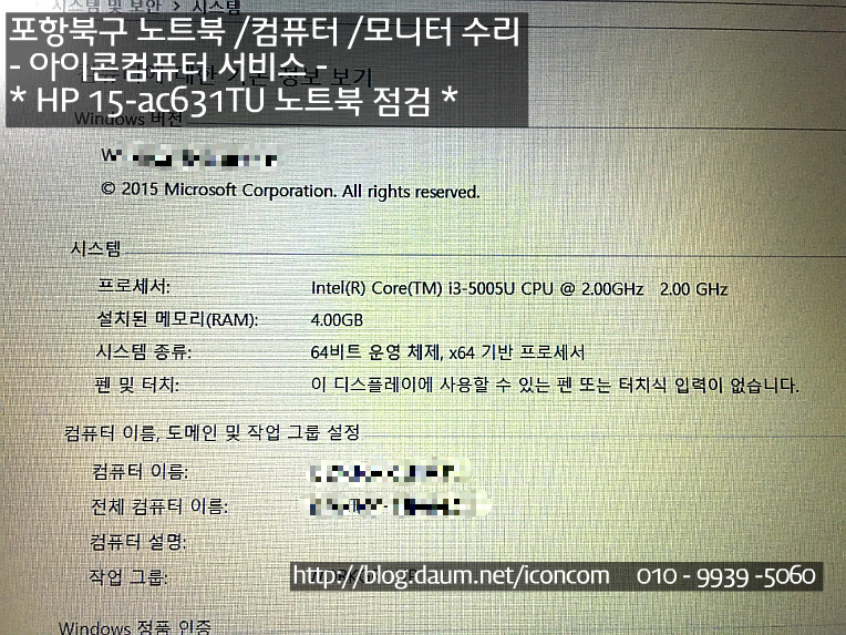 15-ac631TU 를 점검 하여 드렸습니다.