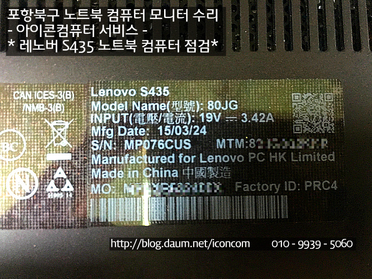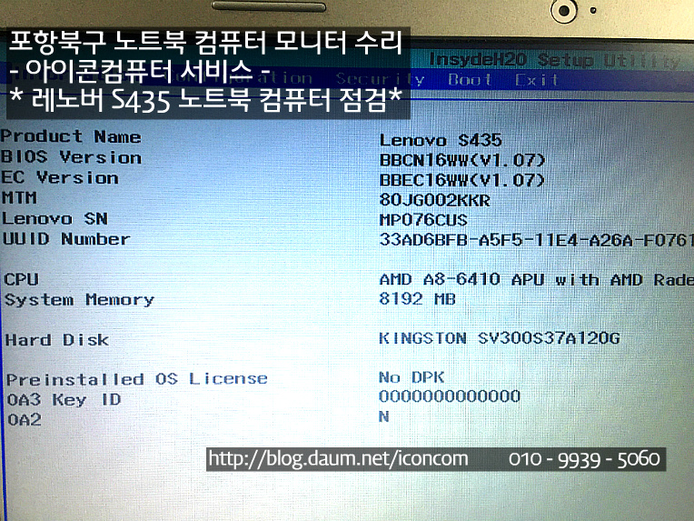 레노버 S435 노트북 컴퓨터 메모리 인식 불량건