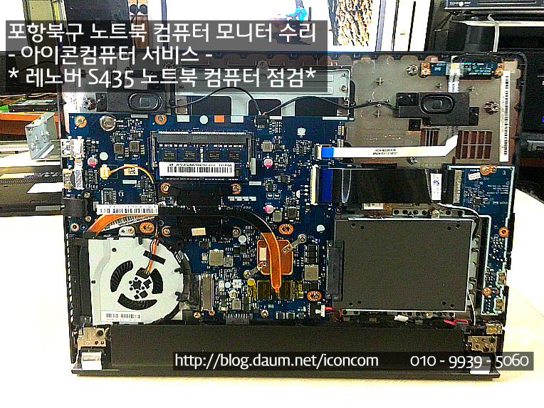 노트북 컴퓨터 뒷판을 제거 한 상태입닏.