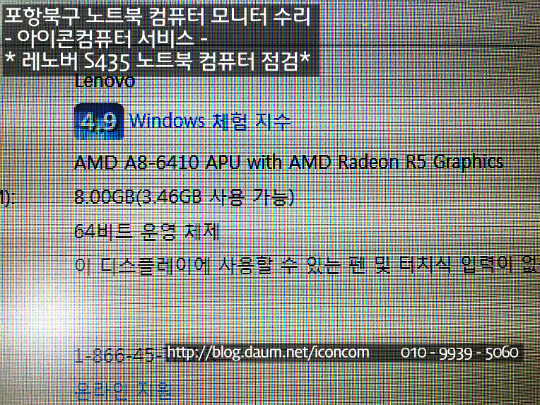 이제 레노버 노트북 컴퓨터 속도와 메모리 인식불량