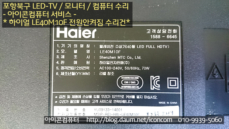 하이얼전자판매(주) 이며 모델명은 LE40M10F