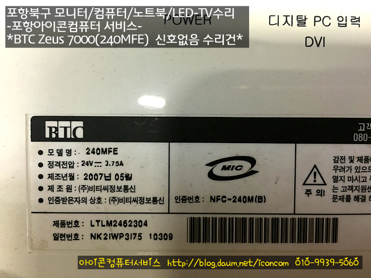 | 대도동 컴퓨터매장에서 삼성23인 LCD-TV 화면이 나왔다가 바로 꺼져요!(포항북구모니터수리-아이콘컴퓨터) (0) | 2016.11.08 |