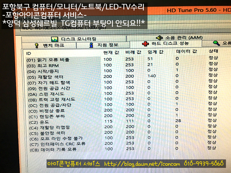 새하드디스크로 교체수리 합니다.