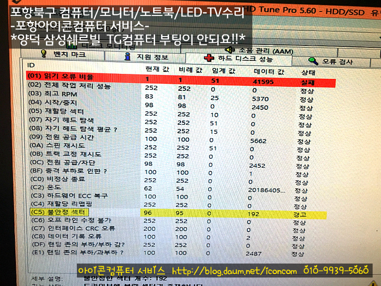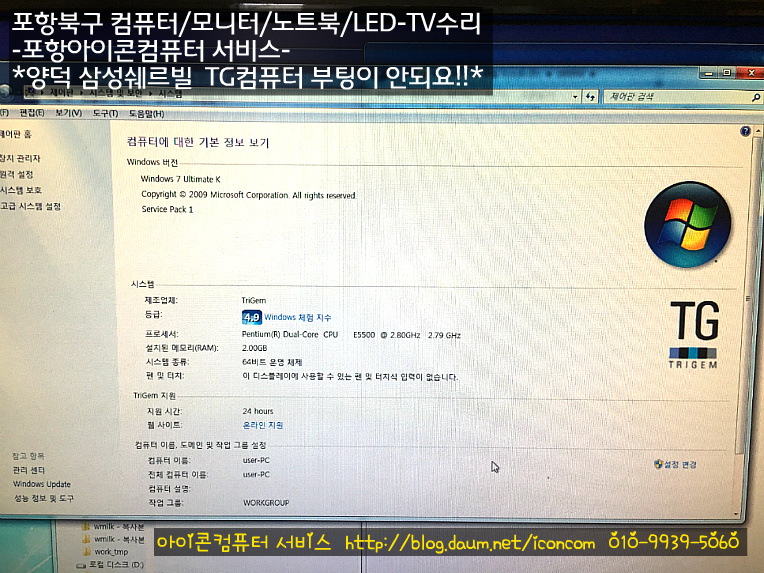 서비스에서 TG컴퓨터 부팅 불량건