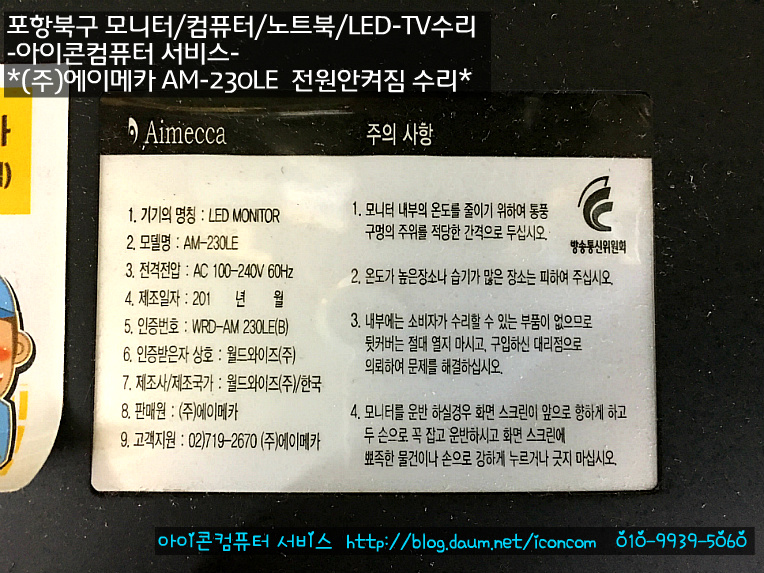 | 컴퓨터 매장에서 그린씨앤씨 27인치 전원이 안켜져요!(포항북구 모니터수리-아이콘컴퓨터) (0) | 2016.11.20 |