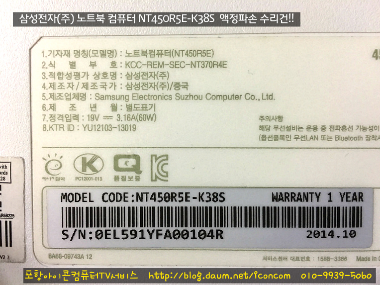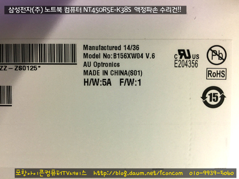 | 대이동에서 삼성전자 노트북 컴퓨터 NT110S1Q 파손액정 교체 수리건!!(포항삼성노트북액정수리점-아이콘컴퓨터TV서비스) (0) | 2018.01.18 |