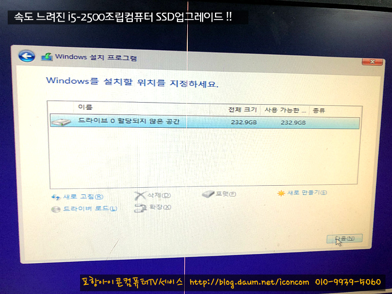 신품 SSD에 파티션및 포맷 작업을
