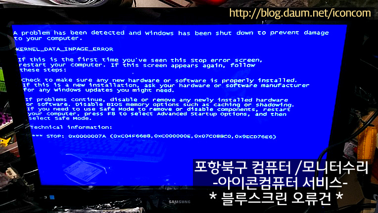 어린이집 업무용 컴퓨터 블루스크린 오류화면 나옴!!(포항북구컴퓨터/모니터수리)-아이콘컴퓨터