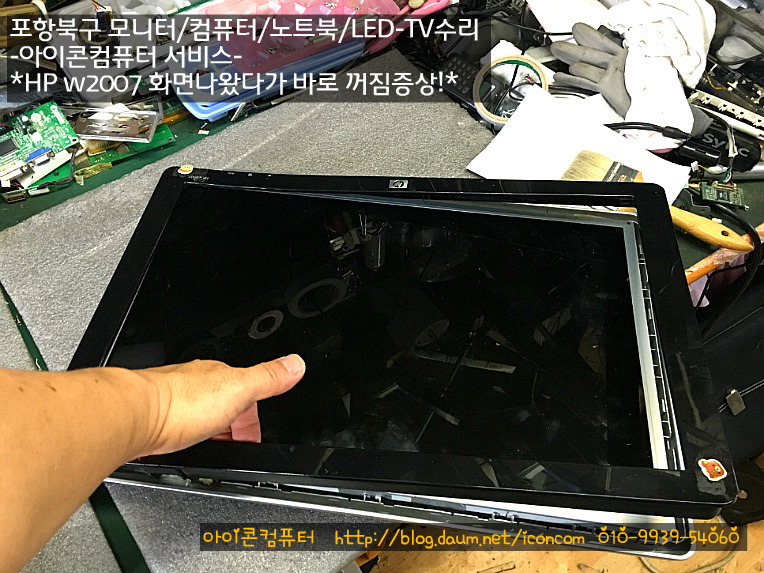 흥해읍 거래처에서 HP모니터 화면나오다가 꺼져요!(포항북구모니터수리-아이콘컴퓨터)
